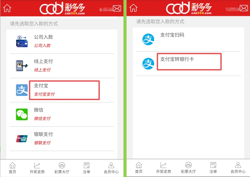 手机用户点击右上角登入,登入会员账号,点击屏幕中的存款充值。再点击支付宝,选择支付宝转银行卡