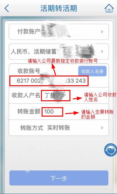第三步:请输入公司最新指定的建设银行收款账号信息