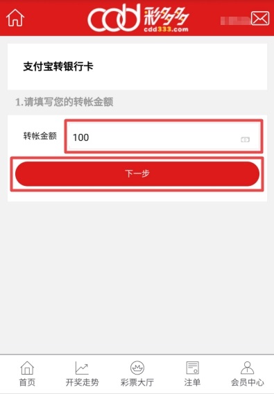 输入您要转账的金额(必须为整数),再点击下一步。